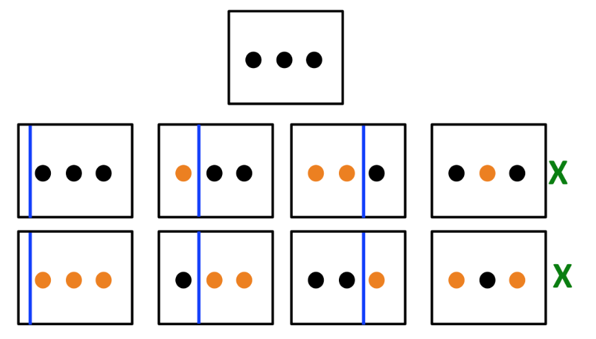 실제로는 모든 경우의 수를 다 고려할 필요는 없다. 왜냐하면 linear classifier라고 가정했을 때 표현이 불가능한 조합도 있기 때문이다.
