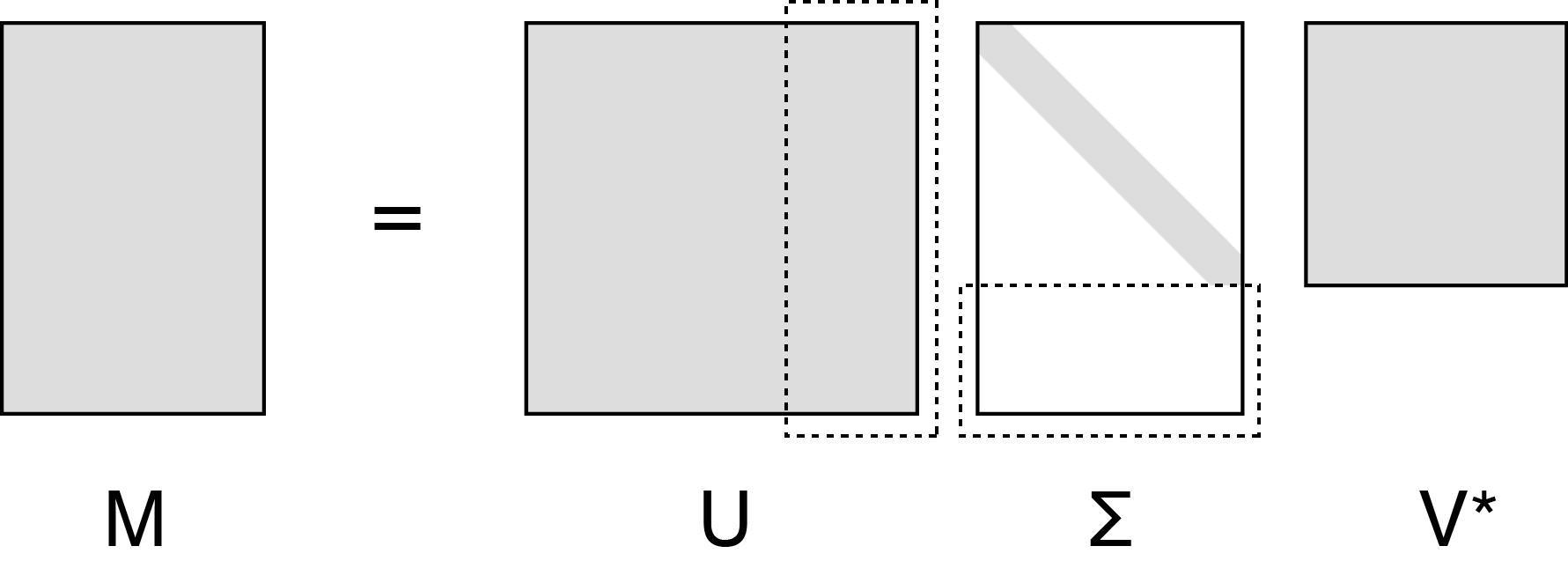 - $\mathbf{U}$와 $\mathbf{V}$는 orthonormal singular vectors들로 이루어진 matrix이고, $\mathbf{\Sigma}$는 singular values들로 이루어진 diagonal matrix이다.